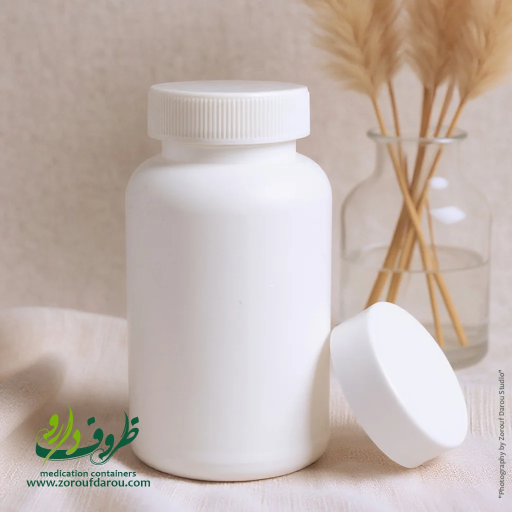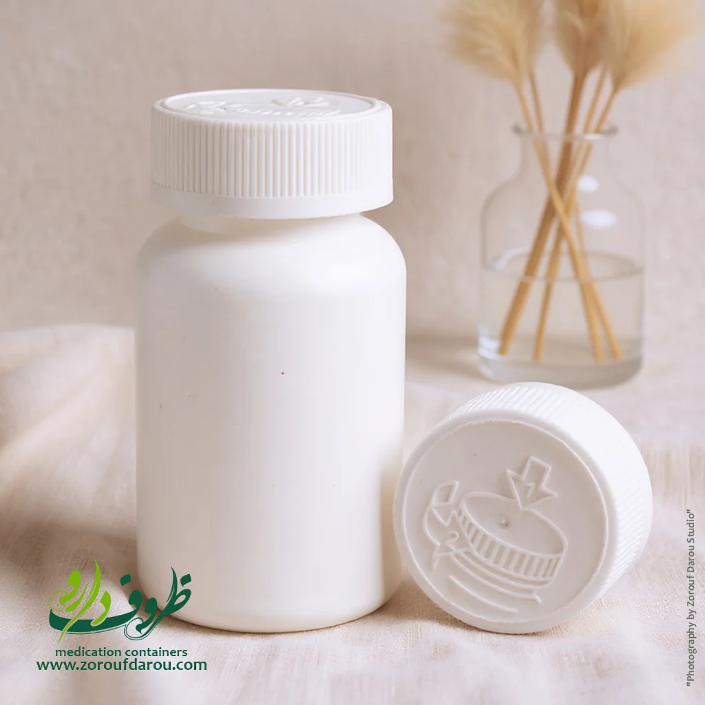 ظرف یا محفظه نگهداری با درب قفلکودک یا چایلدپروف، مناسب برای پودرهای مکمل، کپسول و قرص با ارتفاع 9.7 سانتیمتر و قطر 5.3 سانتیمتر میباشد.
